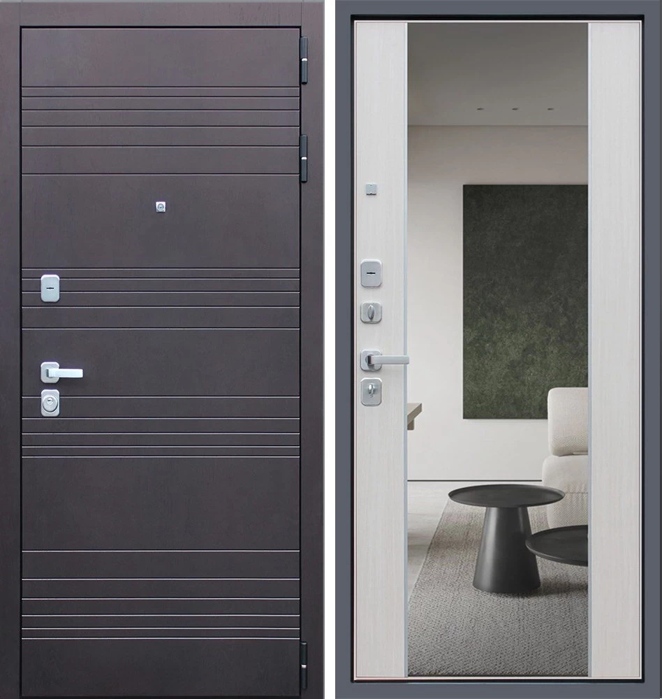 Надежная входная Дверь Дуэт с зеркалом премиум класса по цене 47 165 руб. Большая толщина стали защитит от проникновения в ваш дом, квартиру или коттедж. Используется очень качественная фурнитура: замки, цилиндры, ручки, защелки. Покрытие и отделка двери изготовлено под внимательным контролем производителя. Дверь имеет долгий срок службы и гарантию.
