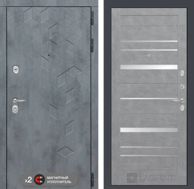 Дизайнерская входная Дверь Бетон класса Люкс с несколькими листами стали, звукоизоляцией и теплоизоляцией. Утепленный короб и полотно защитят от сквозняков и шумов. Модель не только надежная, комфортная, защищенная и высочайшего качества, но и очень красивая! Будет отлично сочетаться с интерьером дома, квартиры или офиса. Сейчас действует выгодное предложение по цене: 55 615 руб.
